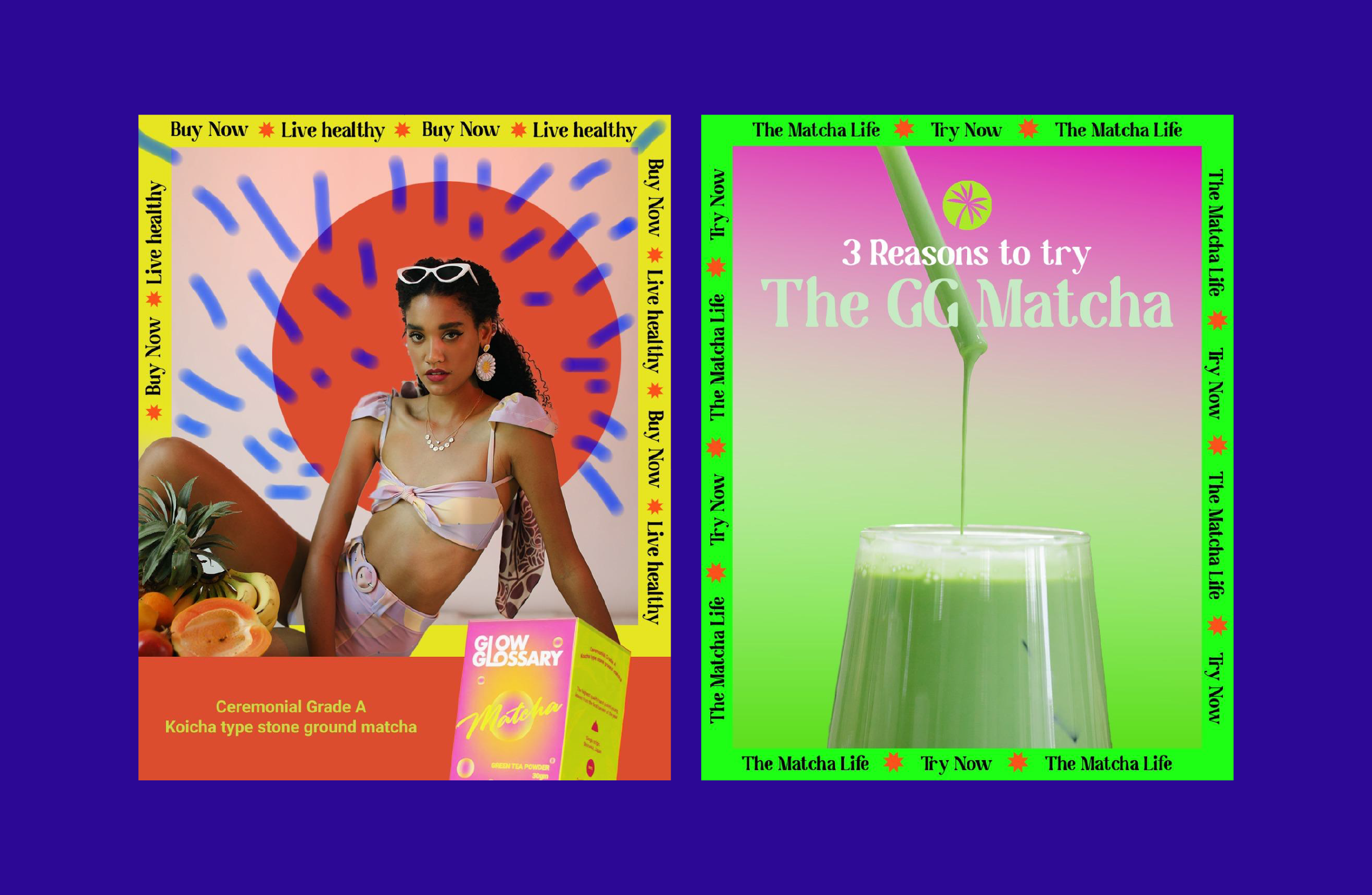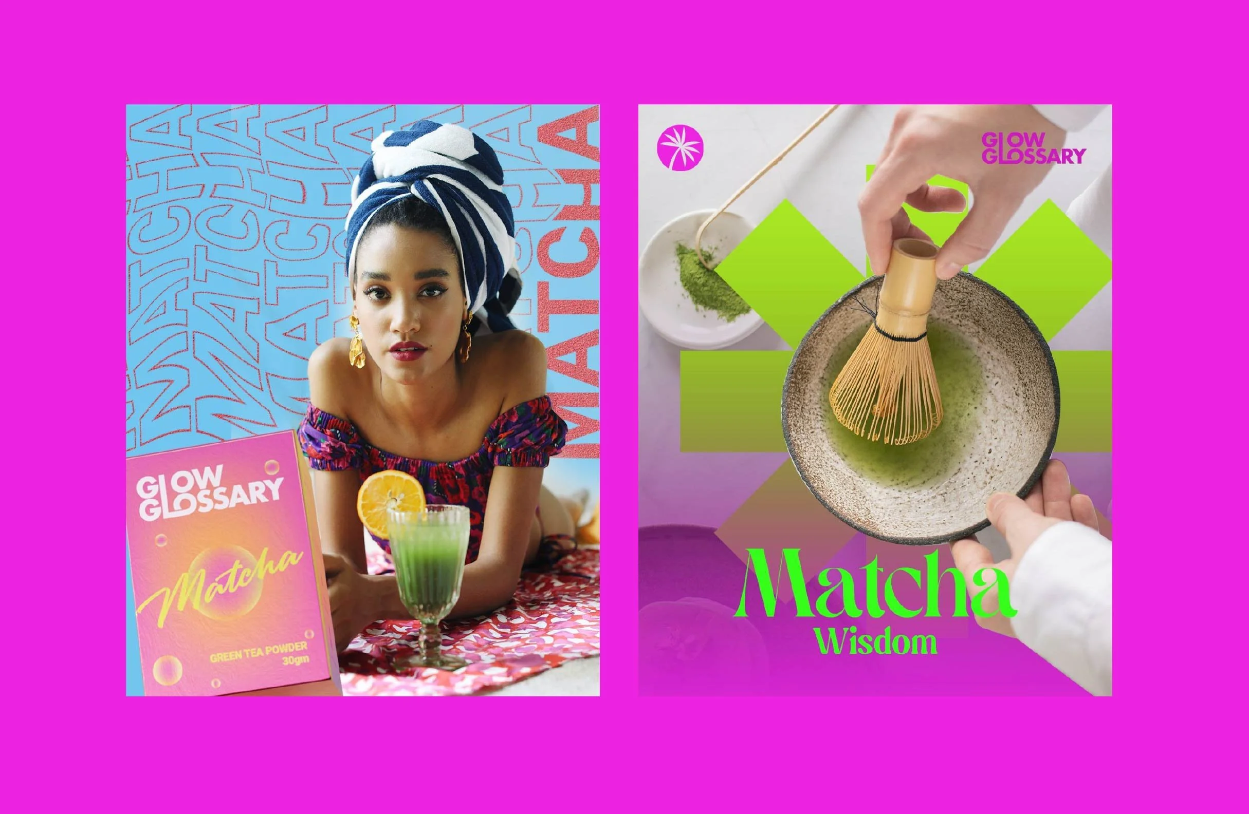Challenge - Glow Glossary set out to reimagine matcha for the modern self-care generation — a brand that bridges tradition with a laid-back, contemporary lifestyle. The challenge was to create a visual language that honored matcha’s Japanese heritage while feeling effortlessly current and vibrant.